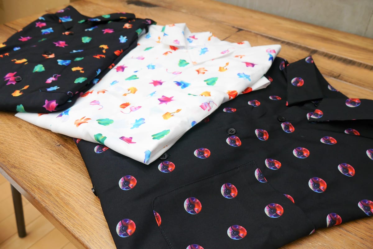 企画展を象徴する、モンスターボールやポケモン柄のユニセックスな総柄シャツです。