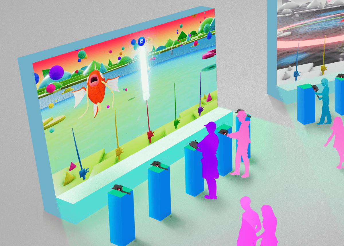 吊り上げる度に、体験している世界にカラフルな色があふれていきます。