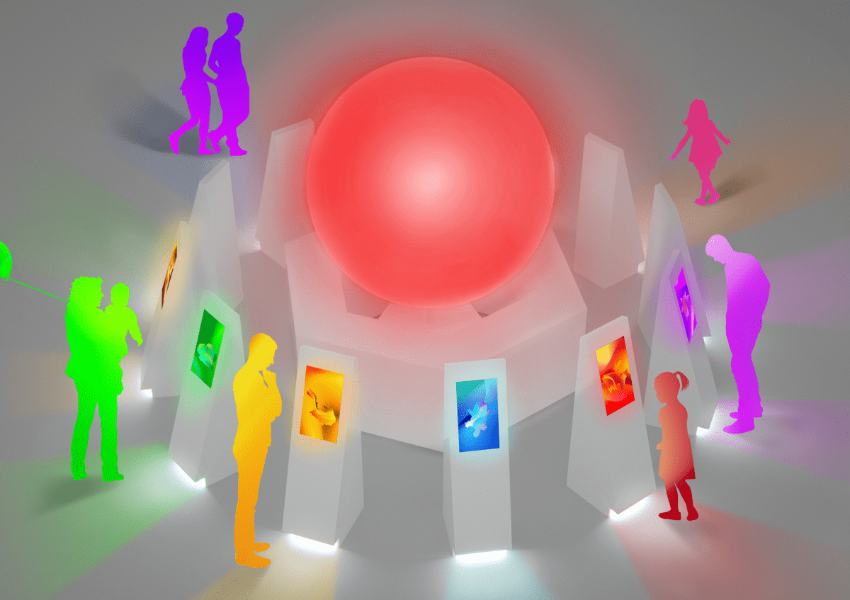 円形を意識したレイアウトがなされた会場は、色が混ざり合い、響き合う心地良いアクティビティを体感するのに最適な空間です。
