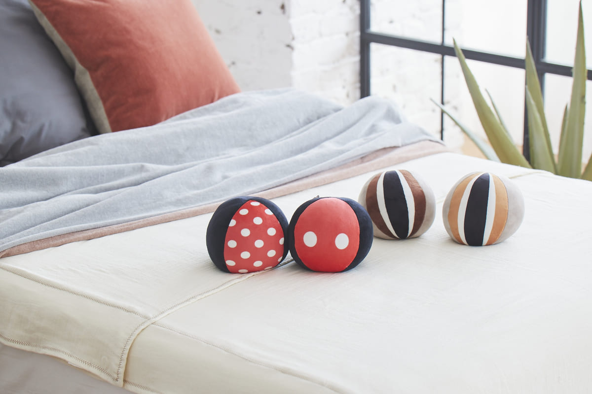 生地はやわらかく、つかみやすい素材のため、握る・つかむといった指を動かすトレーニングにも使えます。