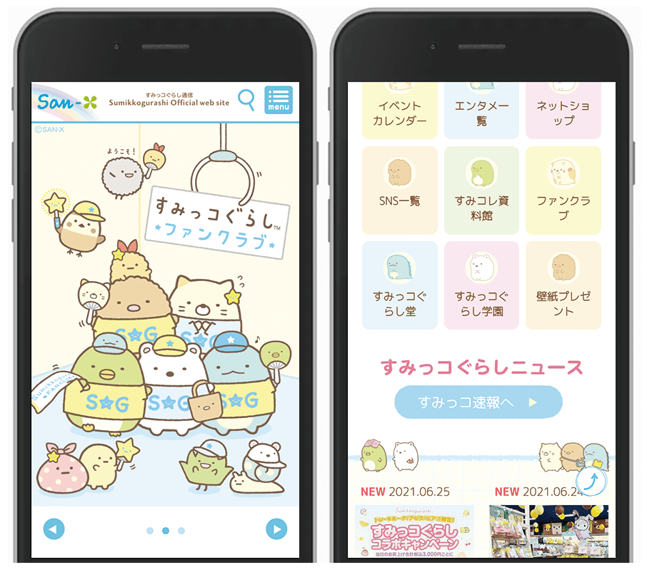 「サンエックスネット」のリニューアルに合わせて、「リラックマ」と「すみっコぐらし」のオフィシャルページも一新。
