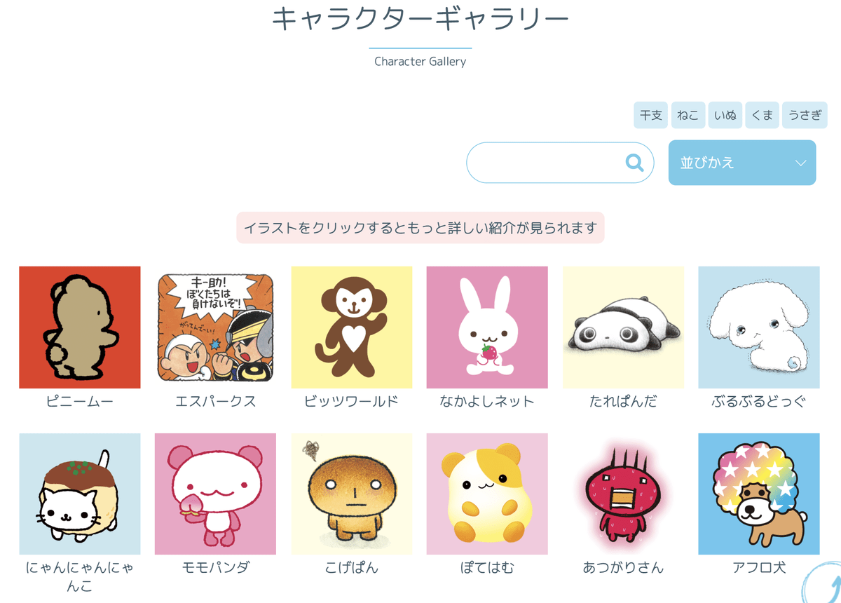 気になるキャラクターをクリックすると、詳細ページが閲覧できます!