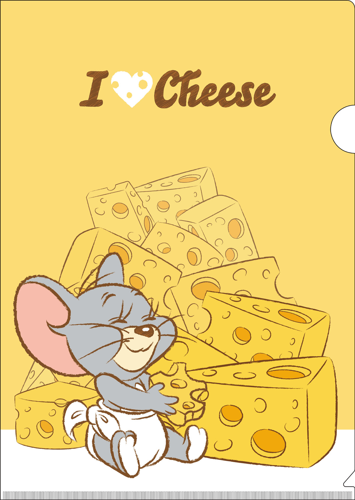 表面はチーズに囲まれた「タフィー」、裏面にはチーズの穴から顔を覗かせる「トムとジェリー」がにぎやかなクリアファイル。