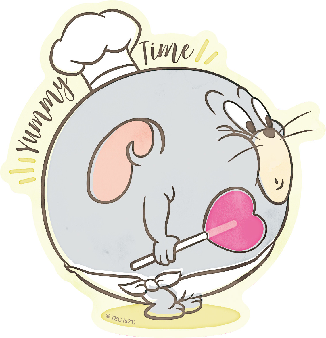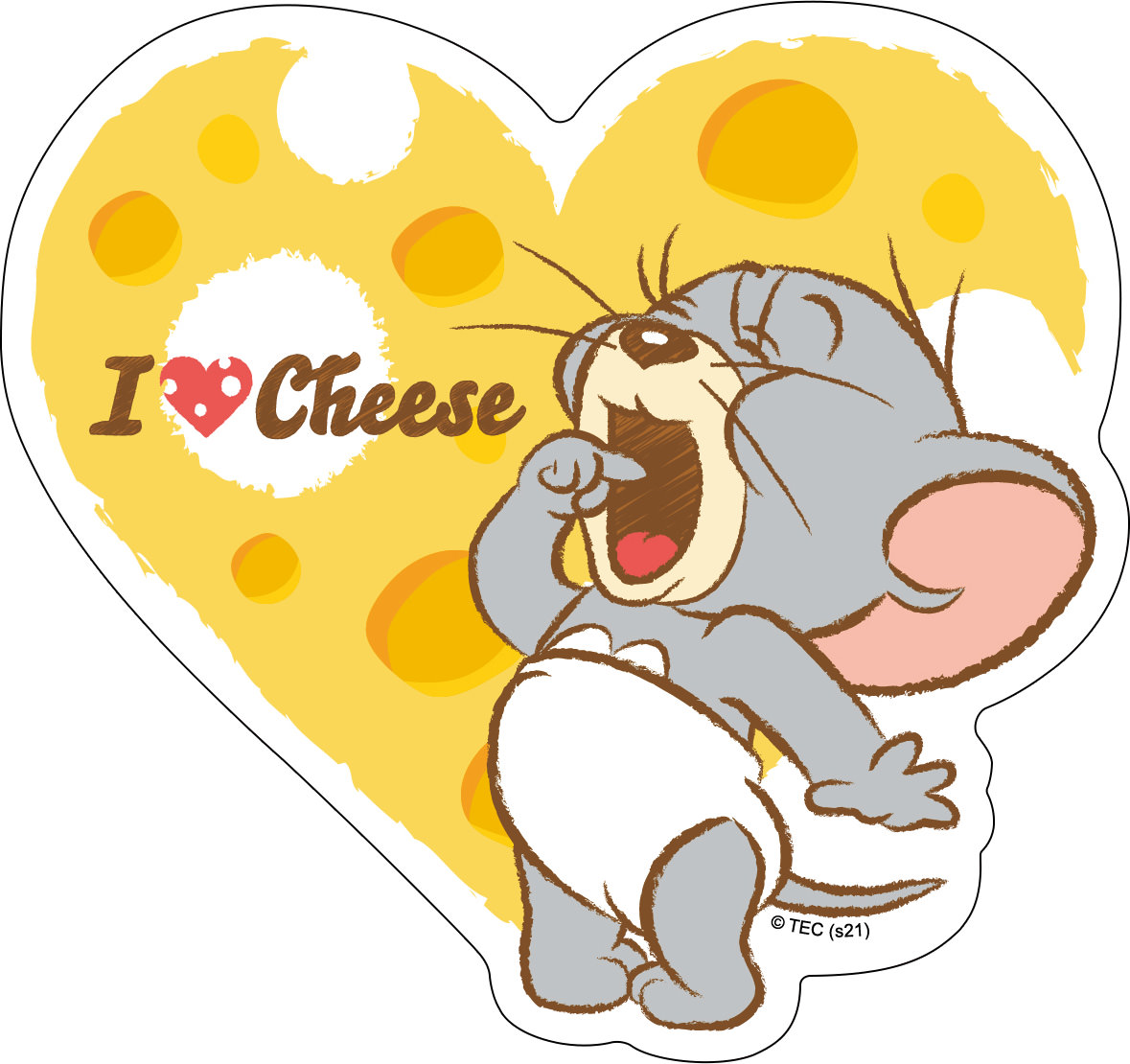 ハート型のチーズに、あくびをする「タフィー」が可愛い、ダイカットステッカーD。