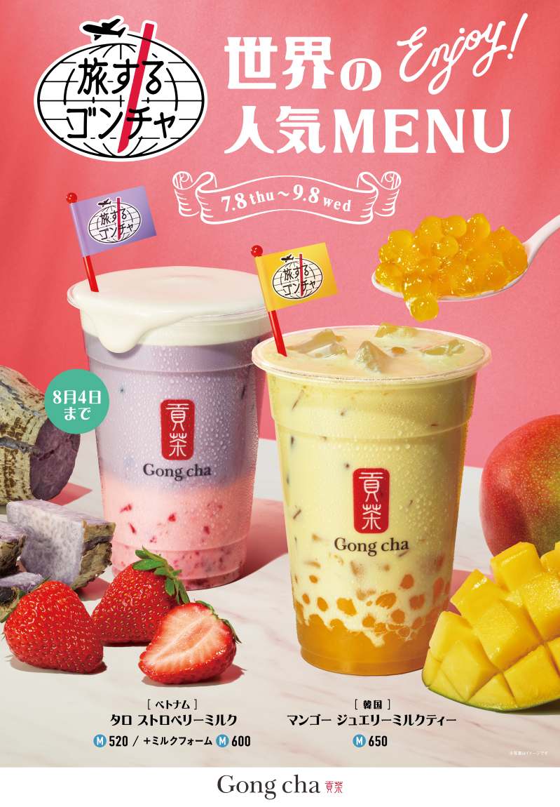 ゴンチャは、2021年夏、世界各国のゴンチャで人気のメニューが期間限定で楽しめる「旅するゴンチャ 世界の人気MENU」を開催。