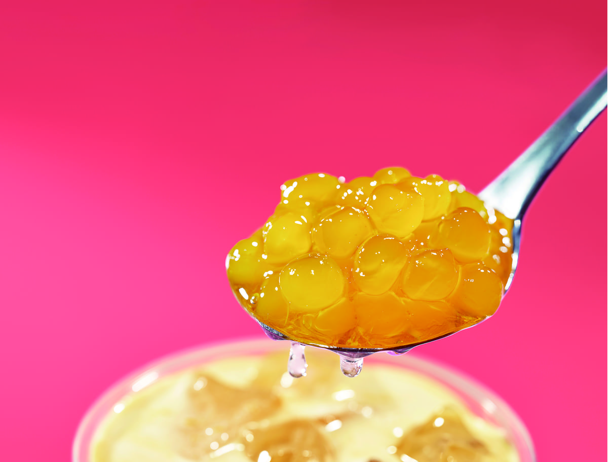 マンゴーフレーバーのゼリーを宝石(ジュエリー)に見立てた、季節限定のトッピング。