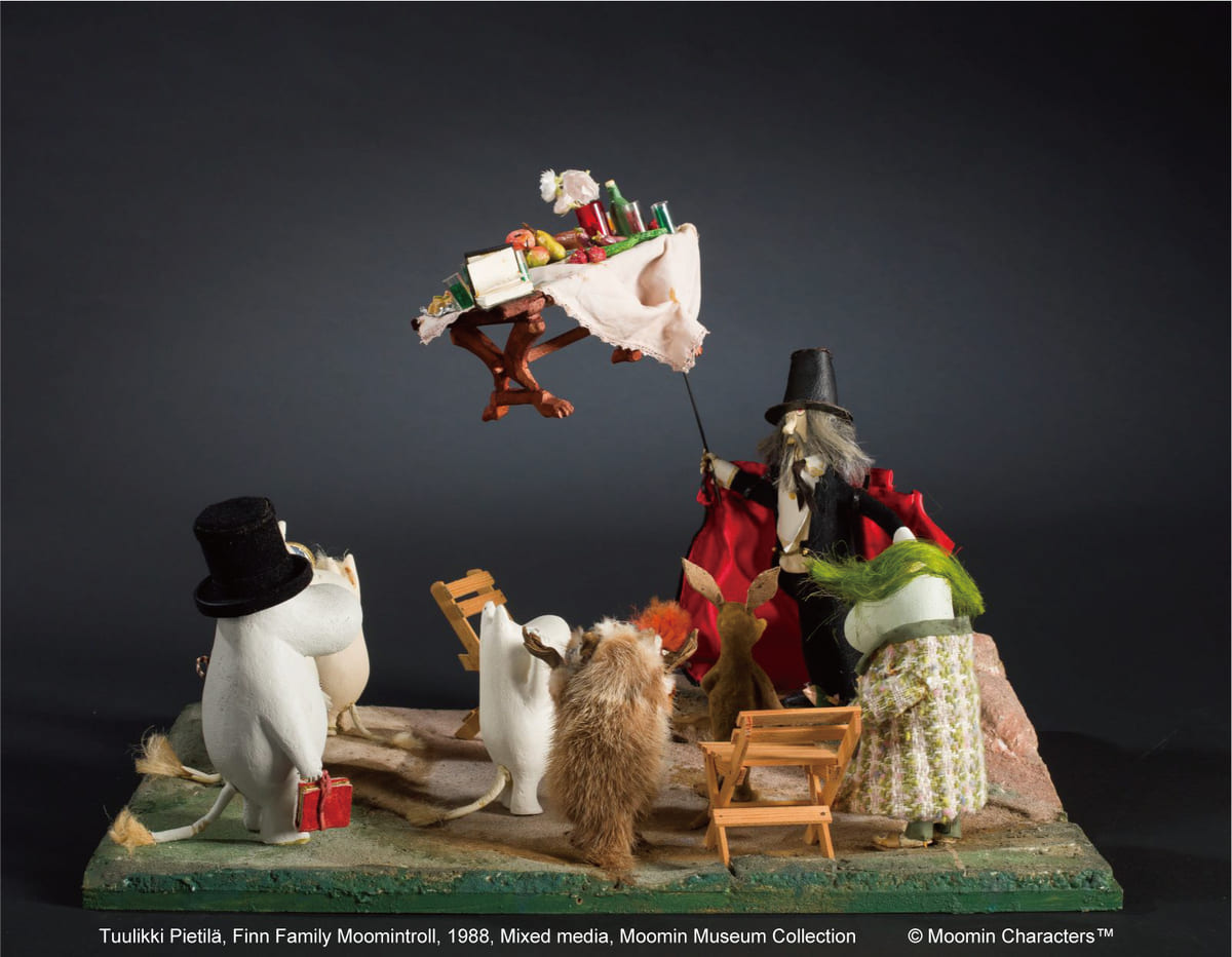 「食」をテーマに選び抜かれた「パラフェルナーリア」20点が来日し、「幻のムーミン人形」と言われているアトリエ・ファウニで構成した食卓シーンの再現は、唯一無二の展示物となります。