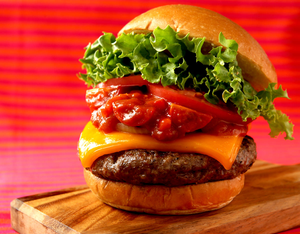 口に入れた瞬間に肉の旨味とスパイシーソースの旨味が広がる、人気ナンバーワンのハンバーガーです。