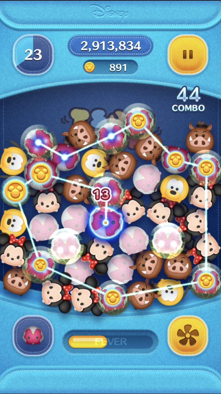 高得点「ヴィジョン」をつなぐと周りのツムを消すことができます!