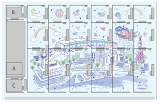 「キキ」と「ララ」が東京モノレール沿線を空から眺める、可愛らしいイラストが描かれ、フォトスポットとしても楽しめます☆