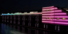 スタンプラリーの開催期間中、大井競馬場前をライトアップ。