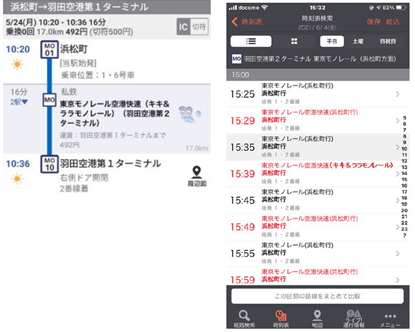 「ジョルダン」で東京モノレール羽田空港線を検索すると、どの列車が「キキ&ララ モノレール」で運行しているかがわかります!