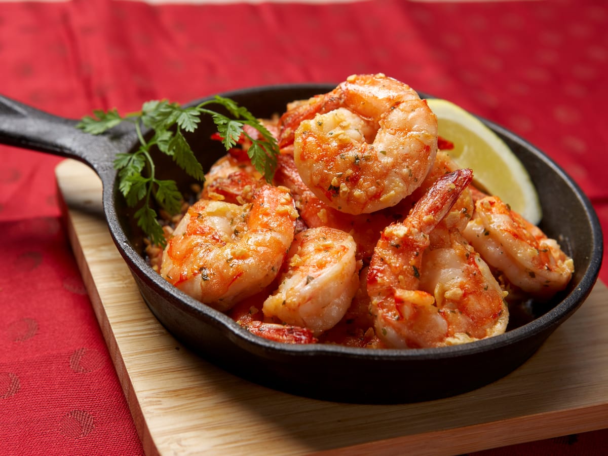 プリプリの海老にたっぷりのガーリックを効かせて焼き上げた、ハワイ生まれの名物グルメ。