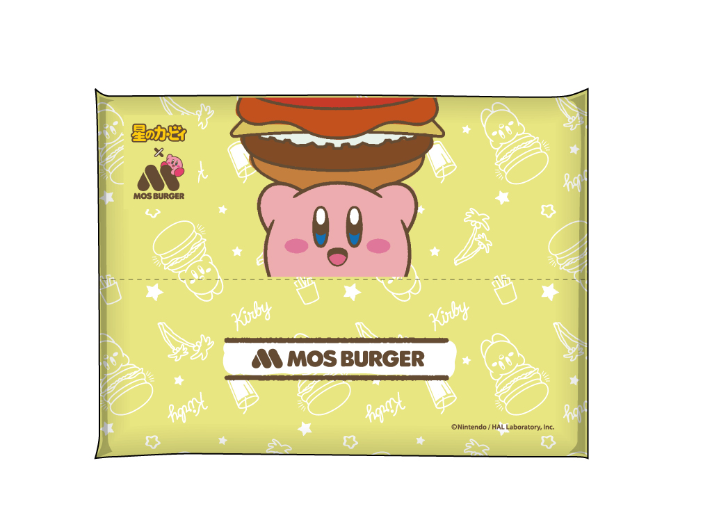まんまるピンクのボディに敵やアイテムをすいこみ、不思議な力を自分のものにできるコピー能力を持つ「カービィ」が、「モスバーガー」の人気メニューとともにデザインされています☆