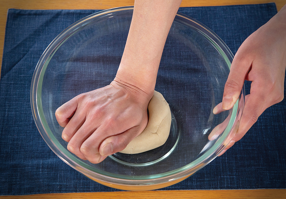 力を加えて空気を抜き、そばに粘りを出します。