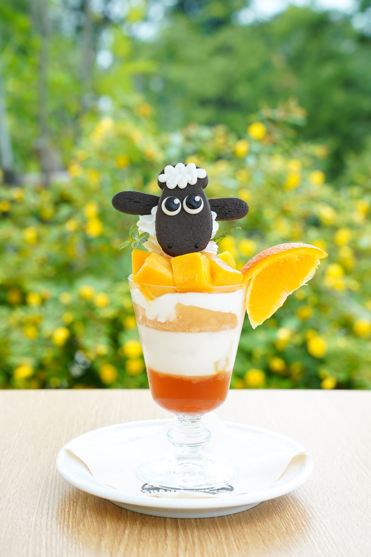 ちょこんと乗った「ショーン」が可愛らしい、マンゴーづくしのトロピカルパフェ。