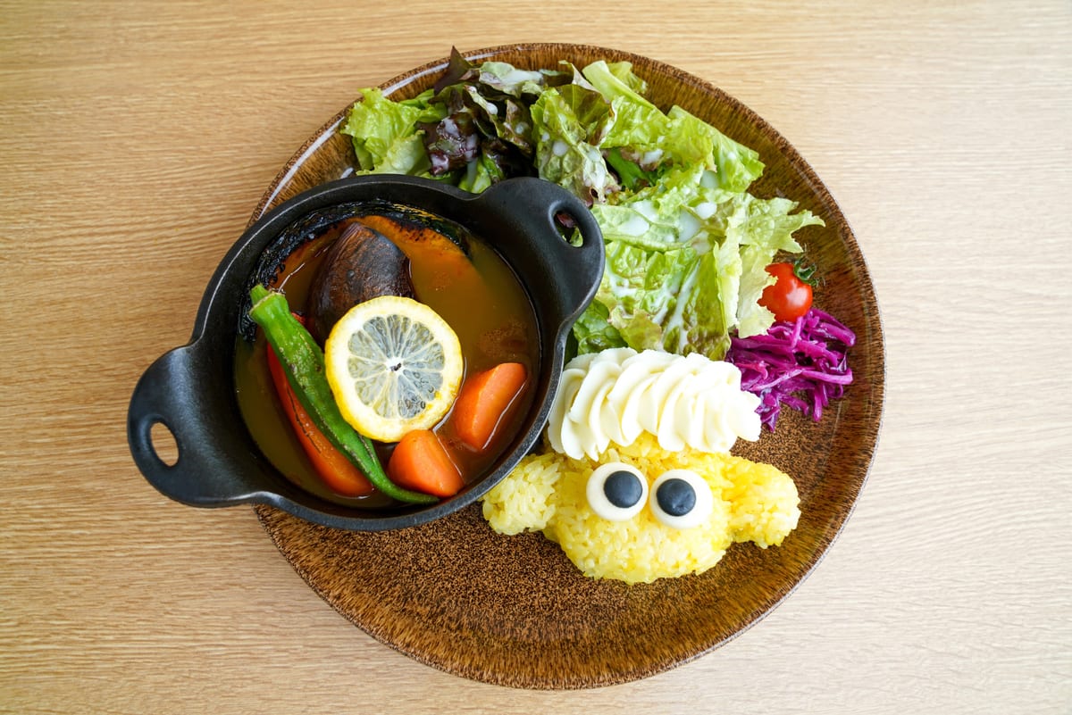 夏野菜とチキンを盛り込んだ、「ショーンビレッジ」オリジナルのスープカレー。