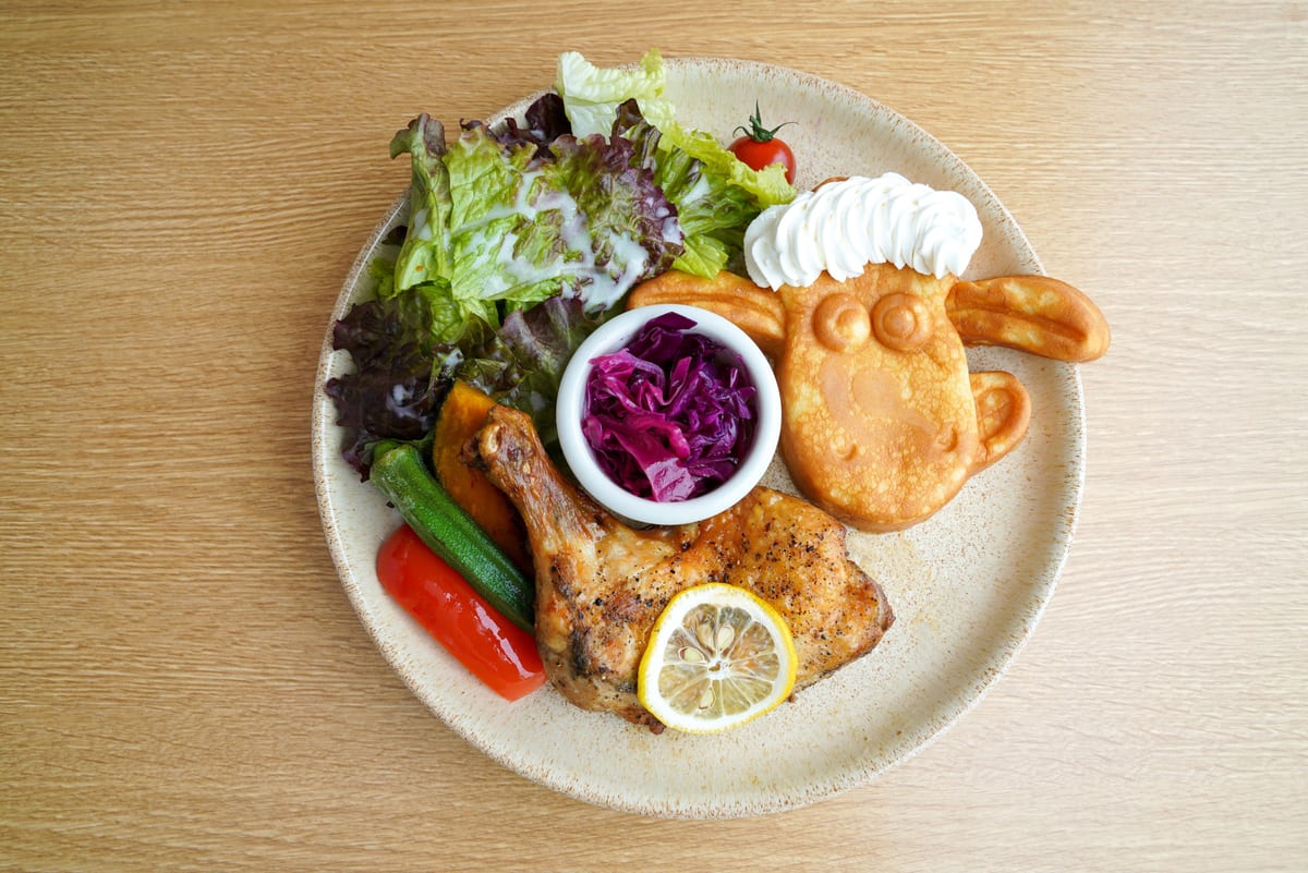 「ショーン」の形になったワッフルとともに、食べごたえある一皿です!