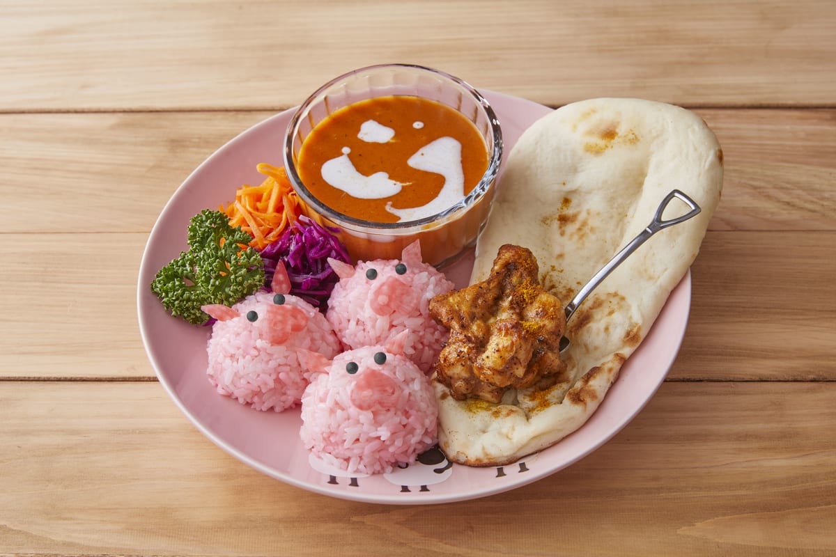 セットになったもちもちのナンや、かわいい3匹のいたずらブタライスと一緒に味わえるメニューです!