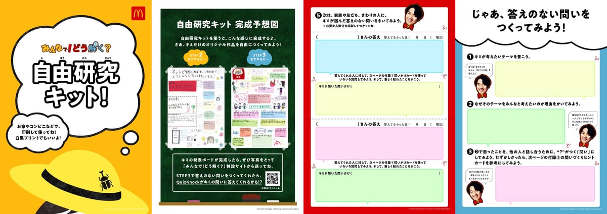 「みんなで!どう解く?」プロジェクトの夏休みの自由研究に利用可能なキットは、マクドナルド公式ウェブサイトにて、2021年7月12日(月)より公開中です。