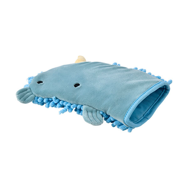 デスクの上を海に見立て、右手にはめてお掃除すると、「イッカク」がホコリを食べてくれるようで楽しい☆