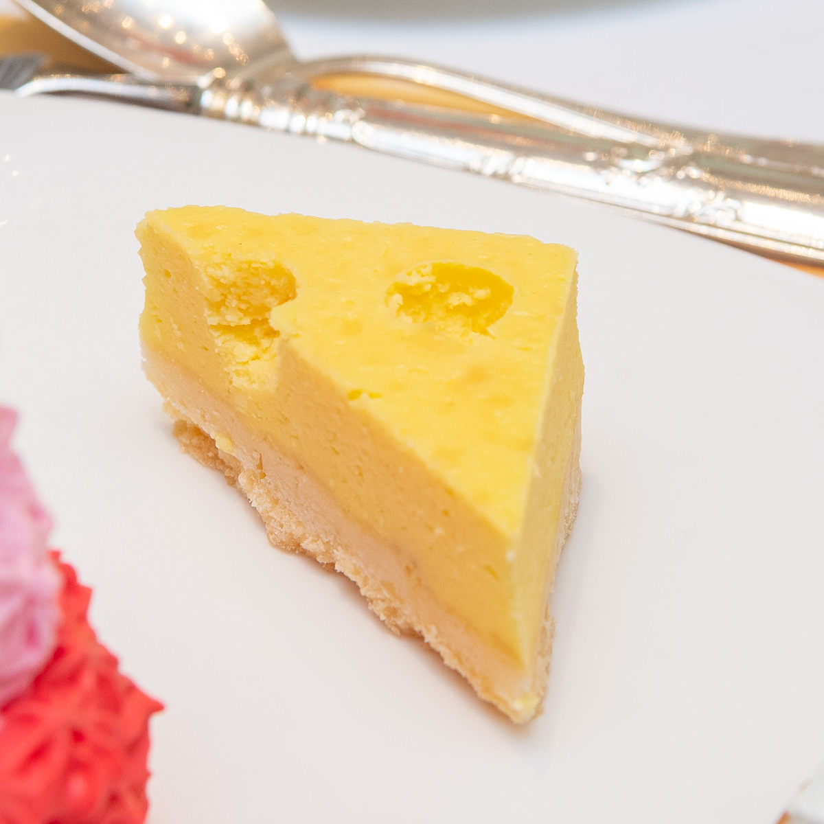 穴あきチーズをイメージしたチーズケーキ。