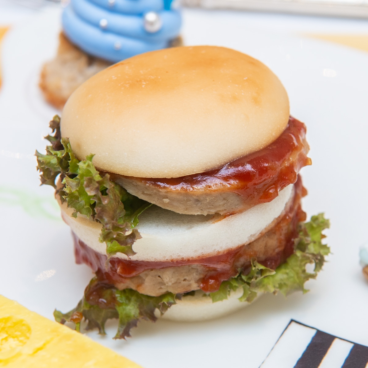 プレートの中央に盛られたメイン料理は、イタズラマウスのミニバーガー。
