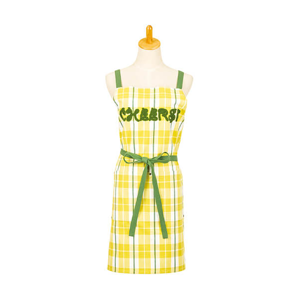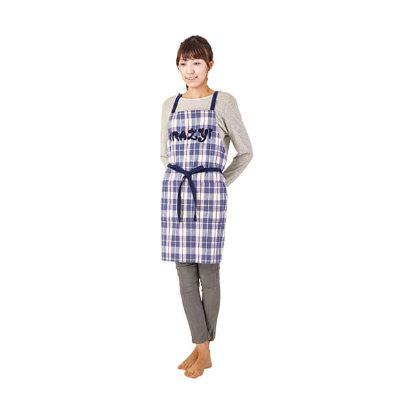 チェック柄にサガラ刺繍の大きなロゴがワンポイントのエプロンが「りぶはあと」から登場!