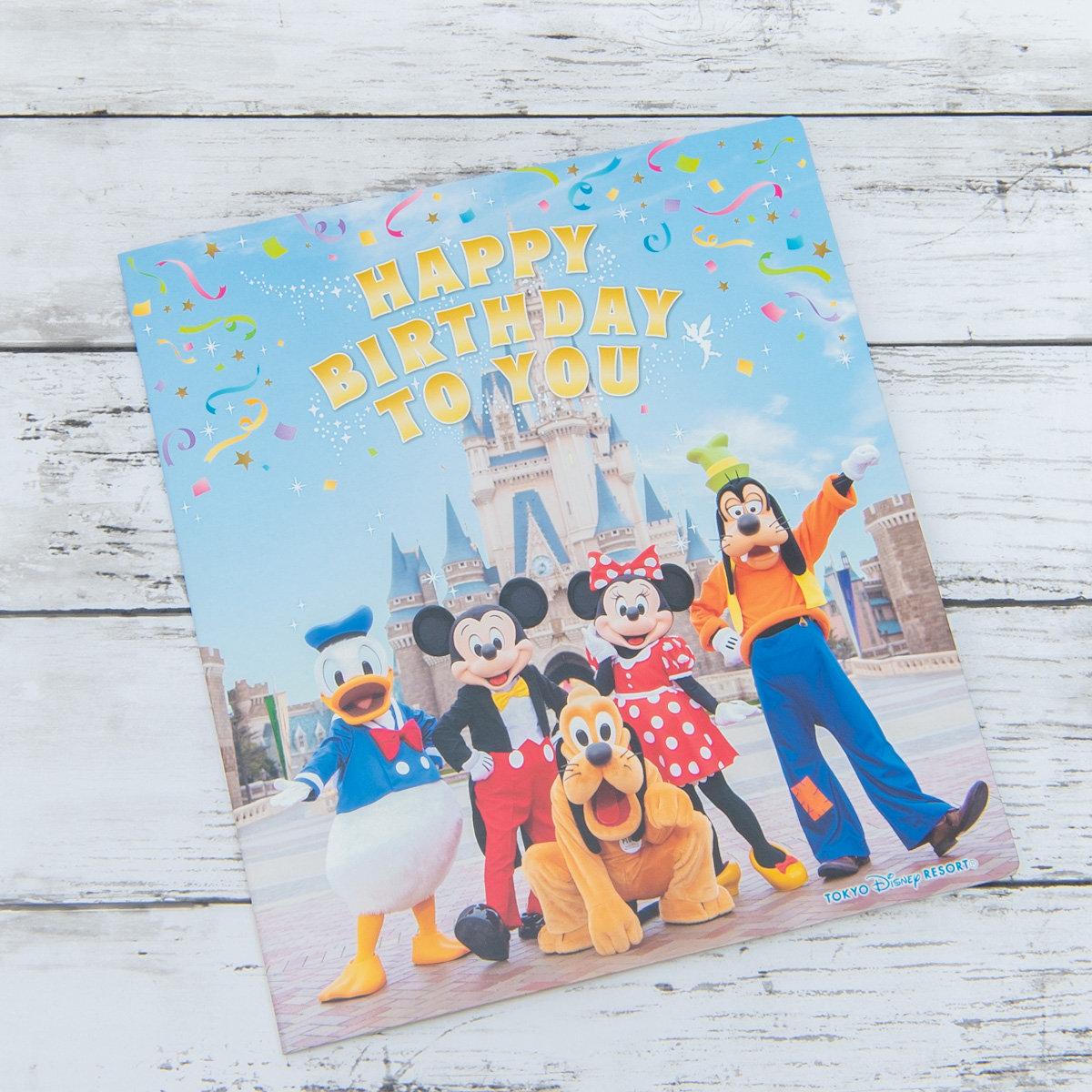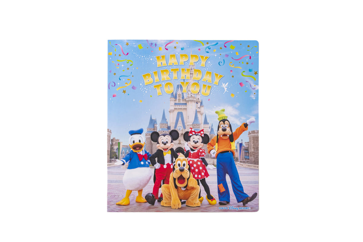 表紙は「ミッキーマウス」たちがポーズをとってお誕生日をお祝いしてくれています。