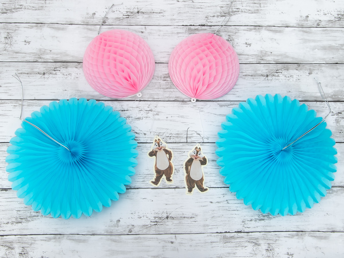「チップ」と「デール」の飾りがついたハニカムボール。