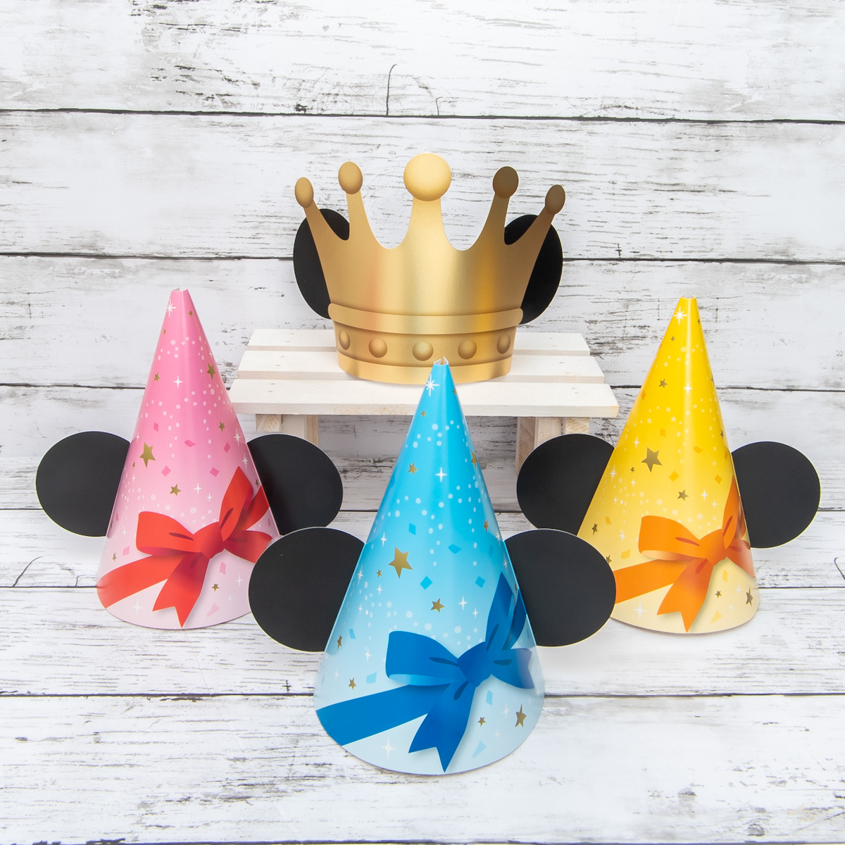 このほかに、同じく「ミッキーマウス」の耳が付いた、ブルー、ピンク、イエローのパーティーハットがセットになっています。