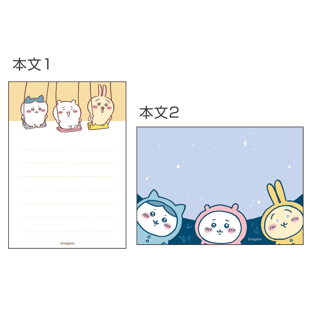 両面印刷の便箋なので、裏面にも「ちいかわ」たちの姿が見えるデザインです☆