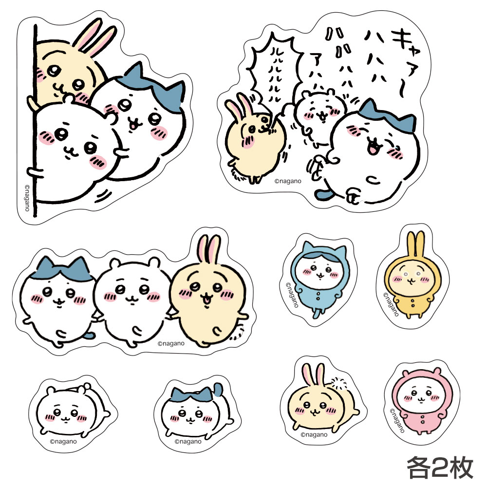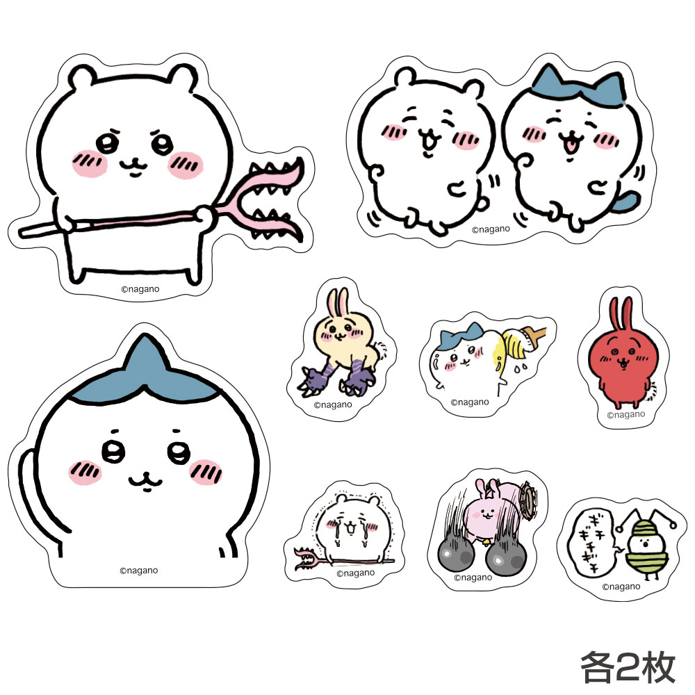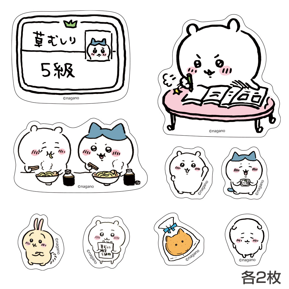 「草むしり検定」に向けて頑張る「ちいかわ」、合格した「ハチワレ」、マイペースな「うさぎ」の様子などを切り取ったシールセット。