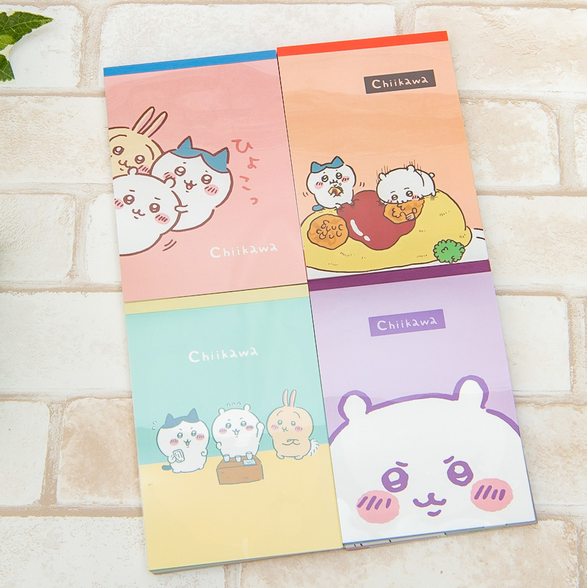 フルカラーで印刷された「ちいかわ」たちの姿がキュートなグッズで、1冊につき4柄がセットになっています☆
