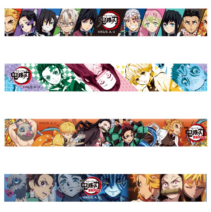 柱たちが勢ぞろいしたものや、「竈門炭治郎」「竈門禰豆子」「我妻善逸」「嘴平伊之助」デザイン、さらに劇場版「鬼滅の刃」 無限列車編デザインがラインナップ。