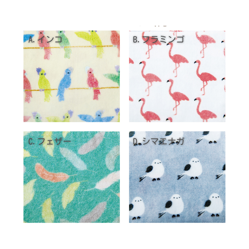 鳥たちのおしゃれでかわいい4種類のデザインが楽しめるハンカチです。