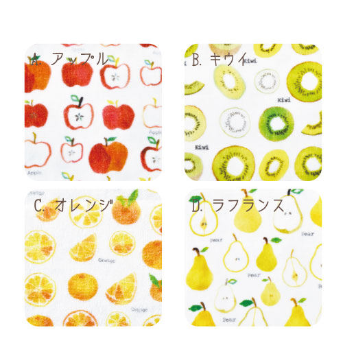 アップルやオレンジなど、4種類のフルーツが描かれています。
