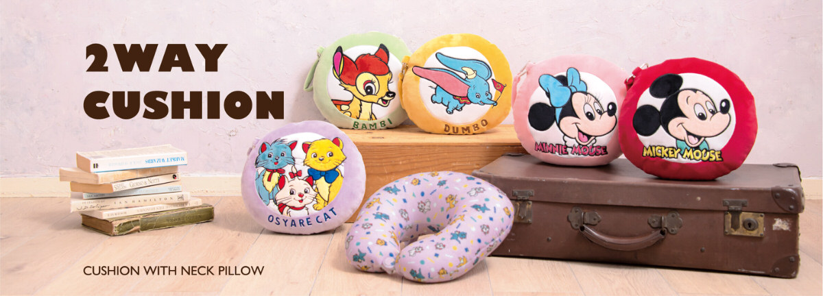 「ミッキーマウス」や「ダンボ」「バンビ」のお顔が描かれたクッションは、2通りの使い方ができる便利グッズです!