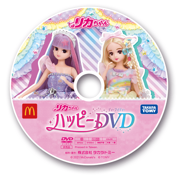ハッピーセット「リカちゃん」を1セットご購入につき「リカちゃん ハッピーDVD2021」が提供されます。