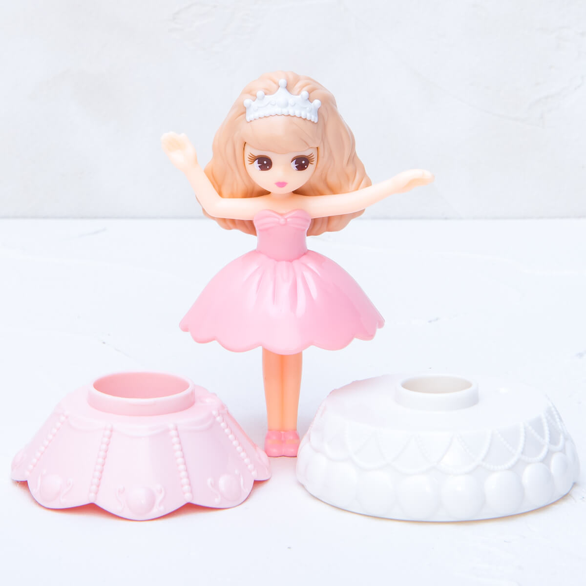 キュートなピンクとホワイトのドレスを着た「リカちゃん」のドレスを着せ替えて遊べます☆