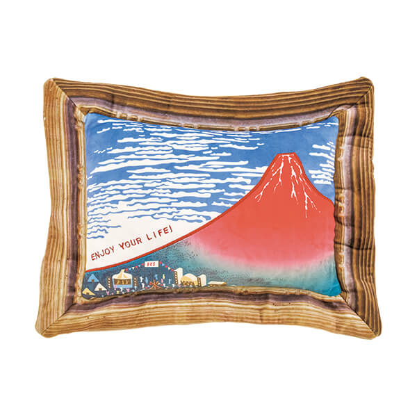 「アートクッション」では「赤富士」の麓で、グランピングを楽しんでいる様子が描かれています。
