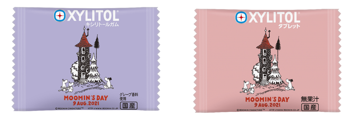 2021年の「ムーミンの日」アートがデザインされたロッテの「キシリトールガム」と「キシリトールタブレット」のサンプルが、入園者プレゼントとして登場!