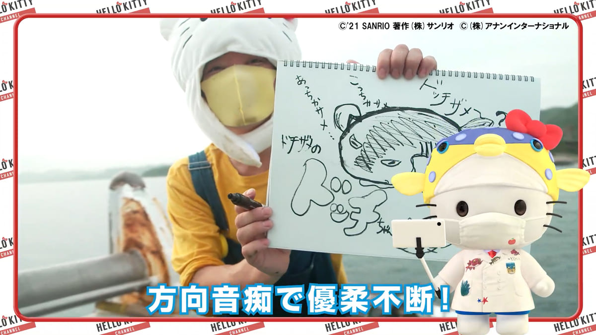 今回の動画では、さかなクンが研究のために同行している定置網漁に、「ハローキティ」も特別に同行させてもらうことに。