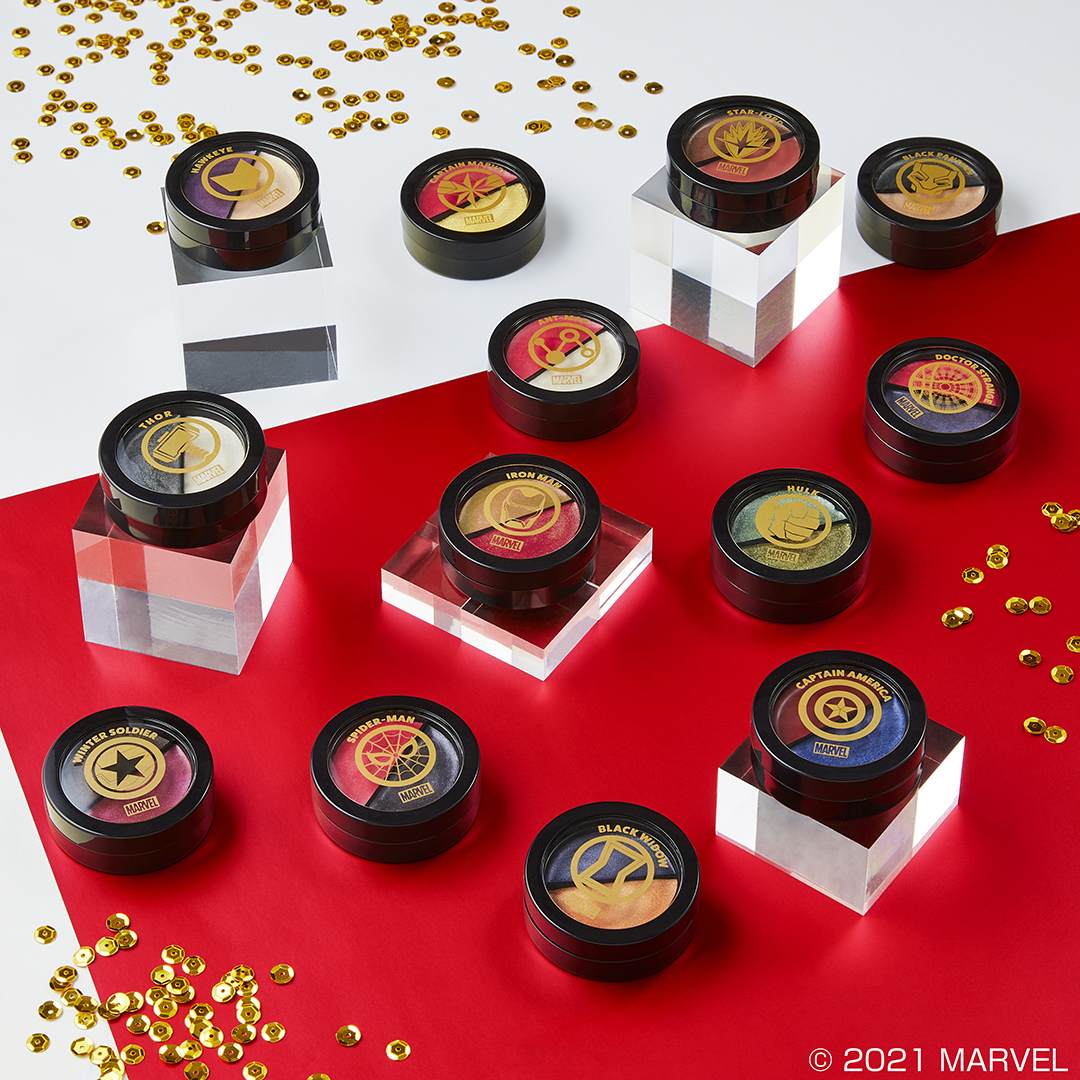 「アベンジャーズ」に登場するキャラクターたちをイメージした、アイシャドーのツインカラーコレクションがE賞に登場。