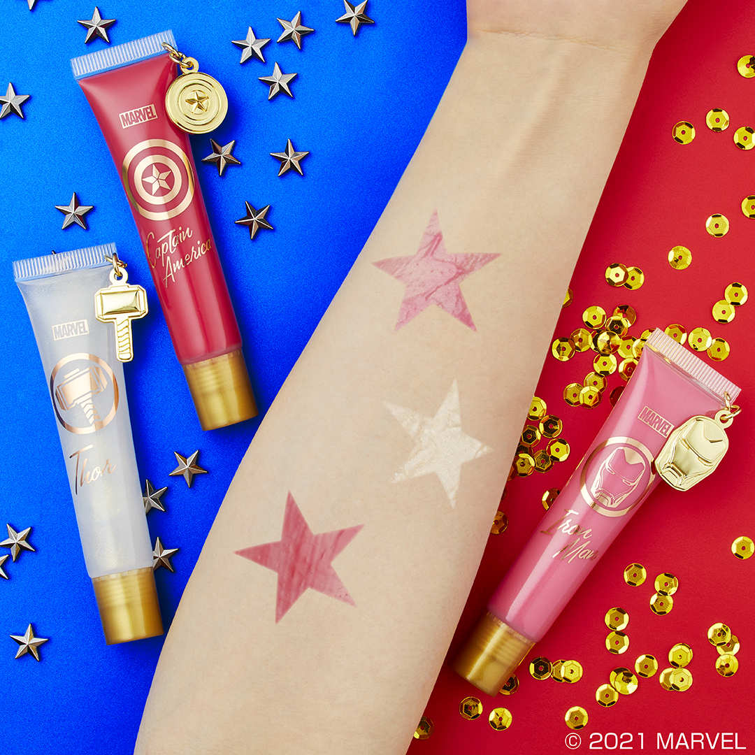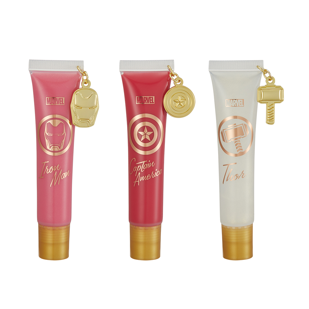 D賞にて展開される「キャプテン・アメリカ」「アイアンマン」「マイティ・ソー」をイメージしたチャーム付きリップグロス。