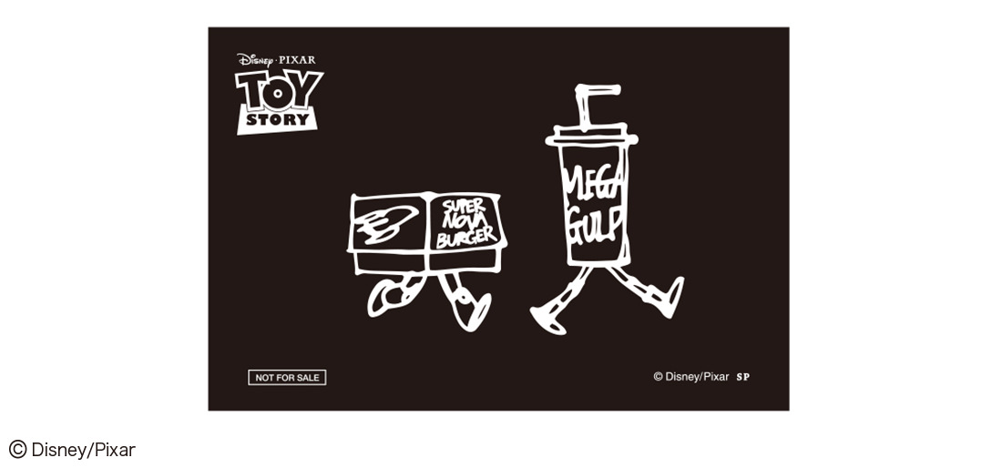 白抜きで描かれた、変装した姿の「ウッディ」と「バズ・ライトイヤー」がポイント☆