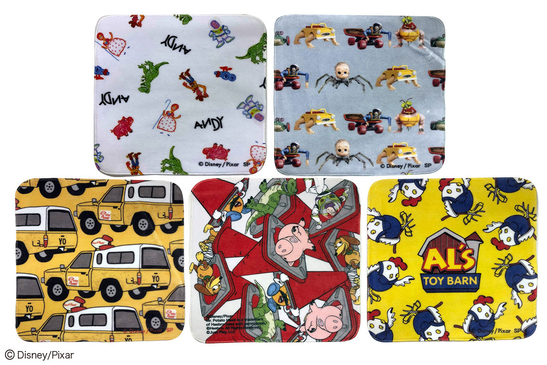 パイロンに隠れた「バズ・ライトイヤー」たちや、『トイ・ストーリー2』に登場するおもちゃ屋「AL'S TOY BARN」、そして「シド」のおもちゃたちのデザインなどがラインナップされています。