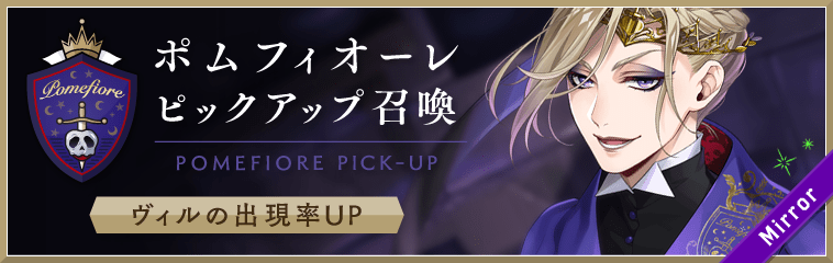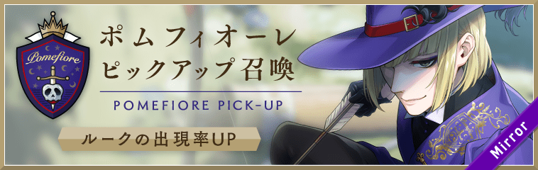 「ポムフィオーレ ピックアップ召喚」では、ピックアップ対象となるキャラクターの提供割合が、同じレアリティの他キャラクターよりもアップします。
