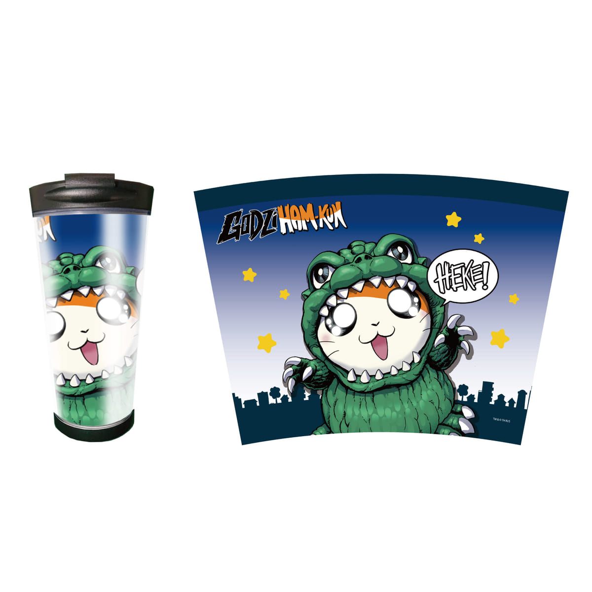 マット・フランク氏イラストのタンブラーやスマホケース、ゴジラ&ハム太郎デザインの缶バッジやパスケースなど、様々な「ゴジハムくん」グッズが登場!