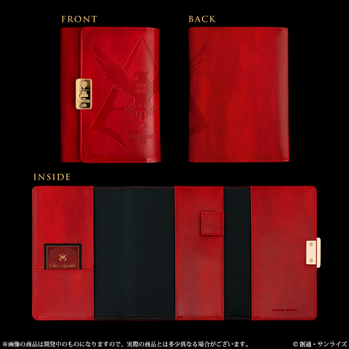 表紙を開くと、内側にはサイン風の「シャア・アズナブル」の名前が金で箔押しされ、開くたびにシャアの存在を感じられる心憎い演出も。